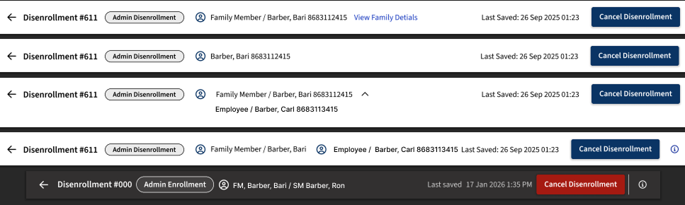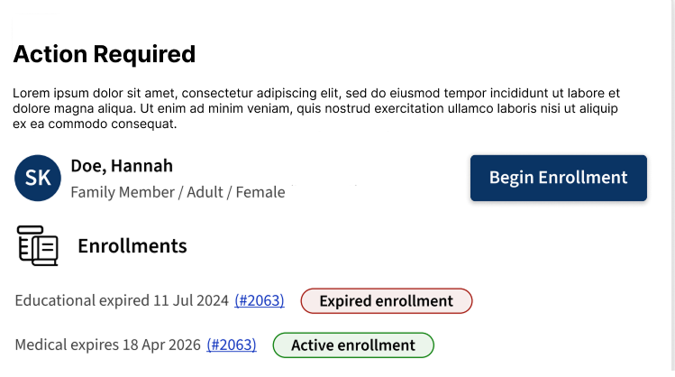I noticed that users couldn’t easily identify who a package re-enrollment belonged to. To address this, I designed a navigation bar that clearly displays both the family member and the employee associated with the package. After exploring several options, the final design included an icon and a call-to-action button, providing clarity and actionable context for users.