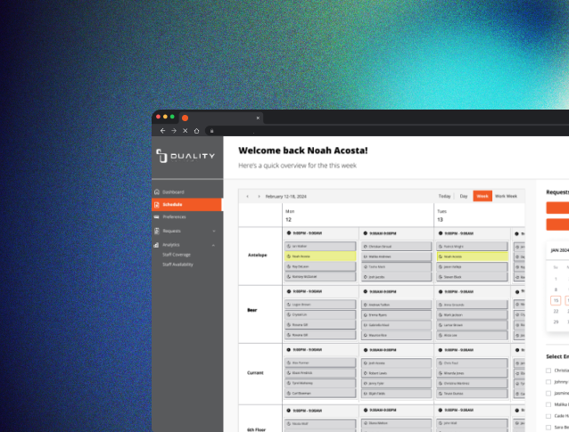 For managers and employees using Duality Systems’ scheduling software, I redesigned the interface to streamline how schedules are created, viewed, and managed. The goal was to simplify complex workflows, improve usability across dashboards, menus, and shift modules, and give both managers and employees a clear, efficient experience—reducing errors, saving time, and making daily operations more seamless